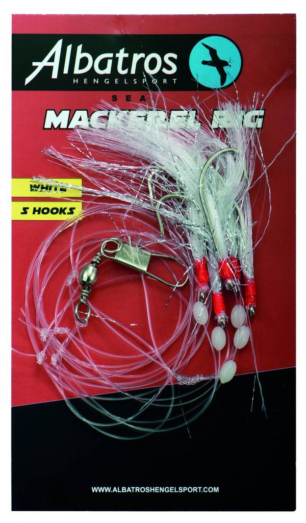 De klassieke verenpaternoster met een modern tintje. Door de combinatie van glitters met veren en kralen krijg je een heel aantrekkelijk onderlijn voor makreel. Verkrijgbaar in 3 kleuren, haakmaat 4 en 6 haken.