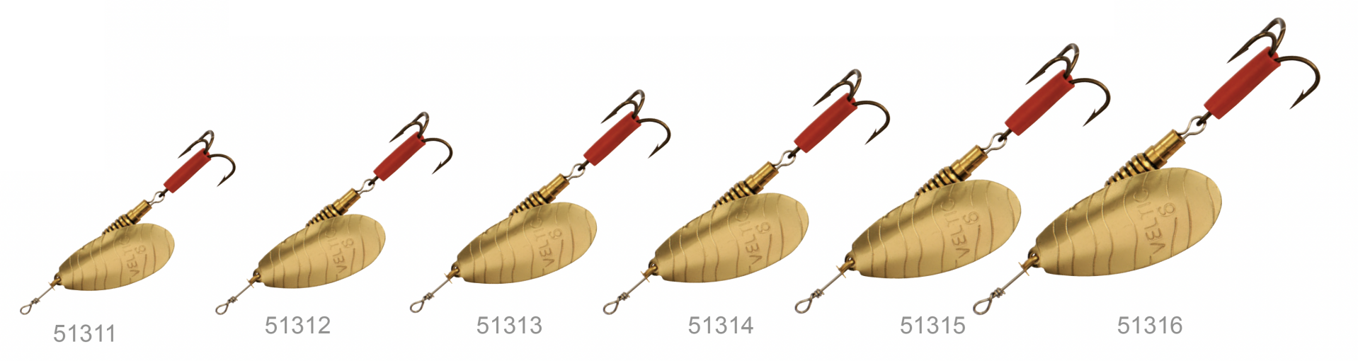Verzwaarde spinners met een langwerpig blad, dat dicht om de as roteert. Hij draait perfect, ook bij langzaam binnen vissen. Dankzij een “paperclip” sluiting is de dreg eenvoudig te verwisselen. Het geheim: soepel draaiend kogelmechanisme en uitgebalanceerd blad.