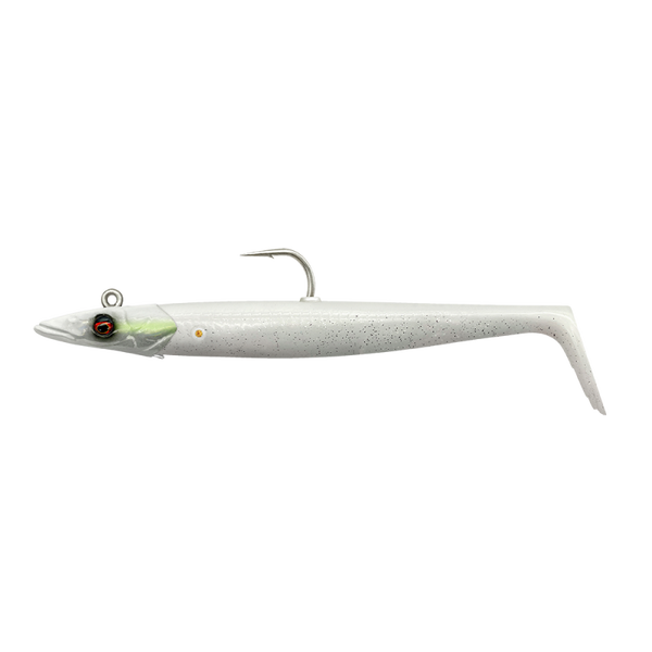 Met een levendige actie bij zowel het laten zakken als het ophalen, zal deze superrealistische imitatie van een zandspiering zelfs de meest shuwe roofvissen voor de gek houden. De unieke jigkop zorgt ervoor dat het kunstaas beweegt met een perfecte rol- en dartactie. De Pro Peg-bodyholder maakt het mogelijk om de shad met een tandenstoker aan het hoofd te pinnen, waardoor er een zeer eenvoudige en veilige connectie ontstaat tussen de shad en de jighead. De zachte PVC-behuizing is voorgemonteerd met een interne glazen rammelaar die een provocerend geluid afgeeft aan jagers in de buurt. Een verpakking bestaat uit 2 shads en 1 jighead.